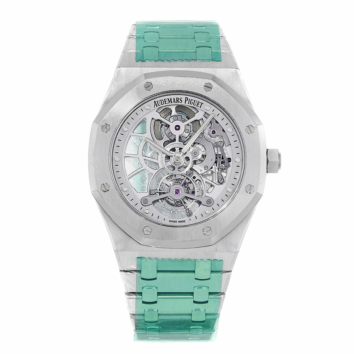 THIS AUDEMARS PIGUET ROYAL OAK 26518ST.OO.1220ST.01 IS A BEAUTIFUL MEN’S TIMEPIECE THAT IS POWERED BY A MECHANICAL MOVEMENT WHICH IS CASED IN A STAINLESS STEEL CASE. IT HAS A OCTAGONAL SHAPE FACE, TOURBILLON DIAL AND HAS HAND STICKS & DOTS STYLE MARKERS. IT IS COMPLETED WITH A STAINLESS STEEL BAND THAT OPENS AND CLOSES WITH A FOLD OVER CLASP WITH DOUBLE PUSH BUTTON SAFETY.. BUY WITH CONFIDENCE KNOWING EACH TIMEPIECE GOES THROUGH THE SAME RIGOROUS 31-POINT INSPECTION. REST ASSURED ONLY AUTHENTIC PARTS STRAIGHT FROM THE MANUFACTURER ARE USED. THE CERTIFIED PRE-OWNED PROGRAM ON AMAZON ENSURES PEACE OF MIND AND TRANSPARENCY VIA STANDARDIZED REPORTS AND A 1 YEAR WARRANTY PROVIDED BY WATCHFACTS.