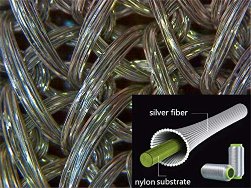 Elastic Material Silver coated Nylon Tri-cot Fabric with Vacuum Sputtering. Highly Electrically Conductive Silver/Nylon Fabric Very Soft and Flexible. Hands Washable in Cold or Warm Water with a Neutral Detergent. No Bleach!