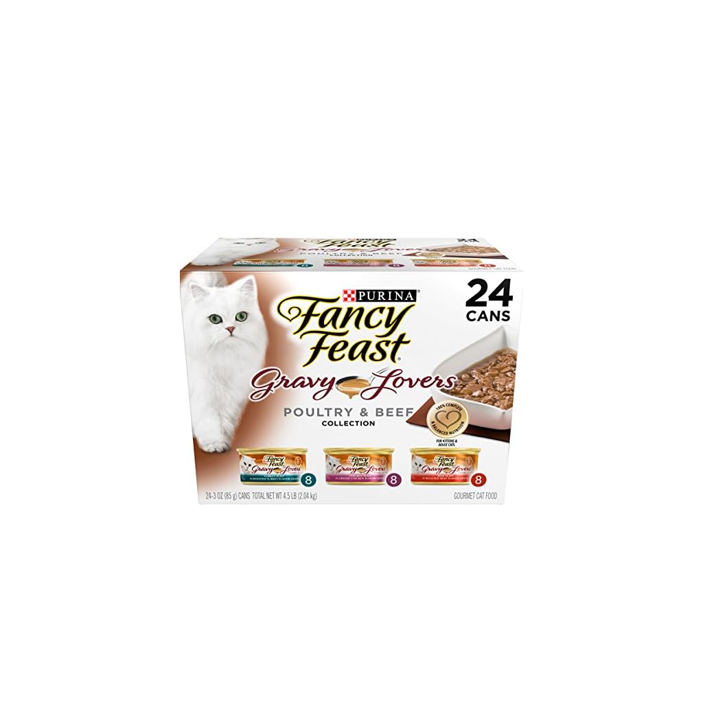 Canned, Cats, Food, Pet Supplies, Wet Twenty Four (24) 3 Ounce Can Purina Fancy Feast Gravy Lovers Poultry & Beef Feast Collection Wet Cat Food Variety Pack Chicken, Turkey And Beef Flavors Cats Love 100% Complete And Balanced Nutrition