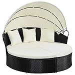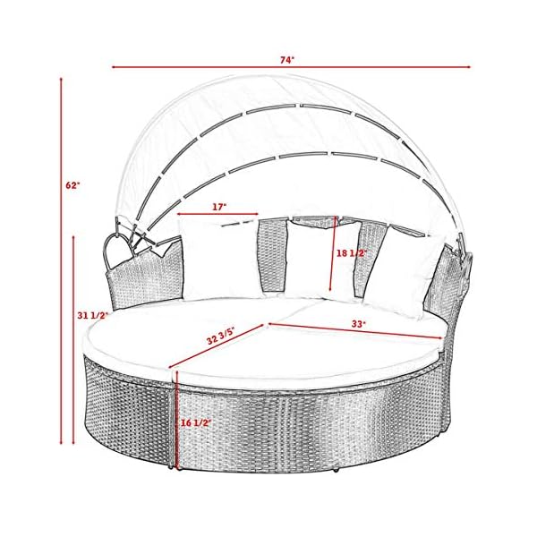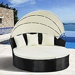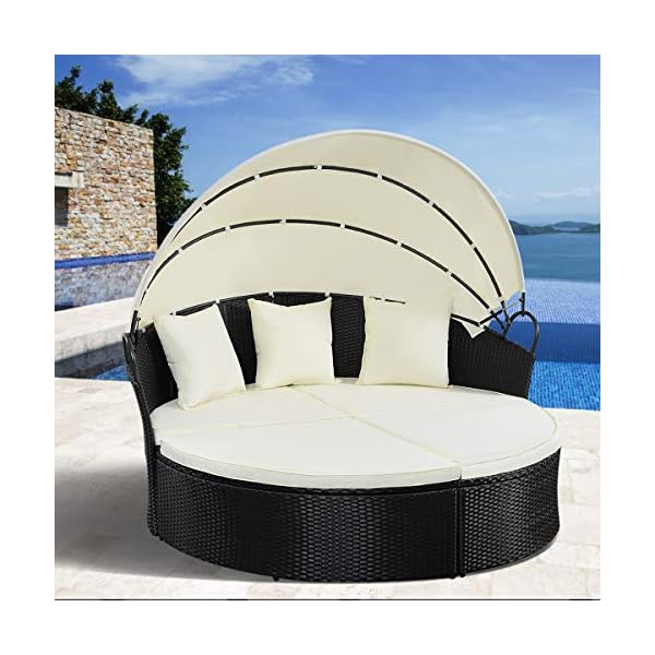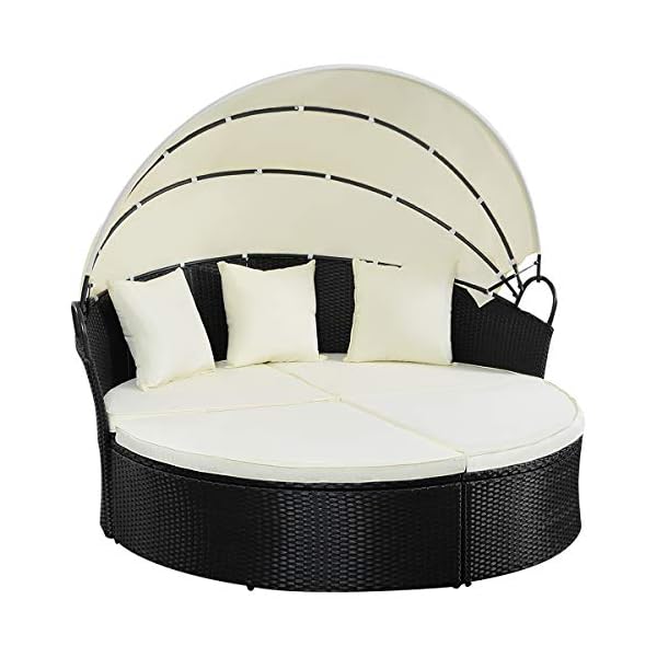 Tangkula Patio Furniture Outdoor Lawn Backyard Poolside Garden Round with Retractable Canopy Wicker Rattan 74″ Diameter Round Daybed, Seating Separates Cushioned Seats (Without Table Round Bed)
